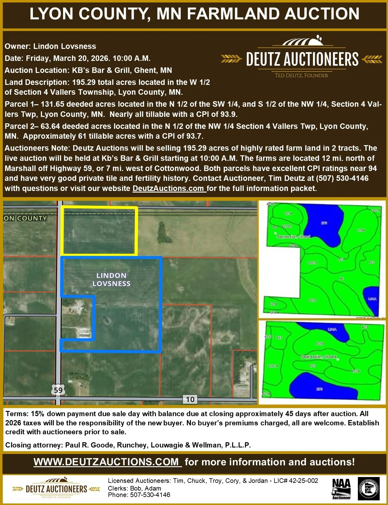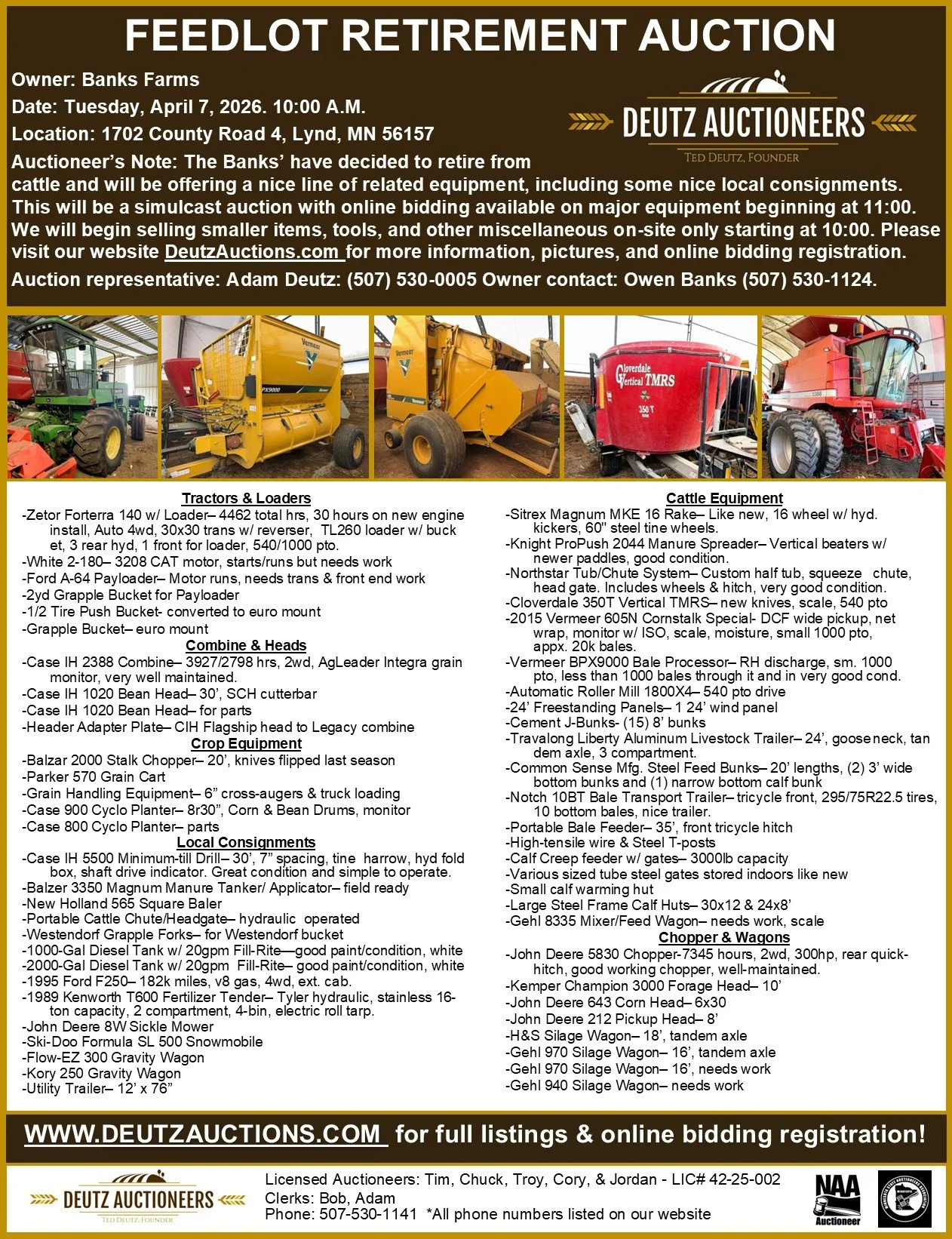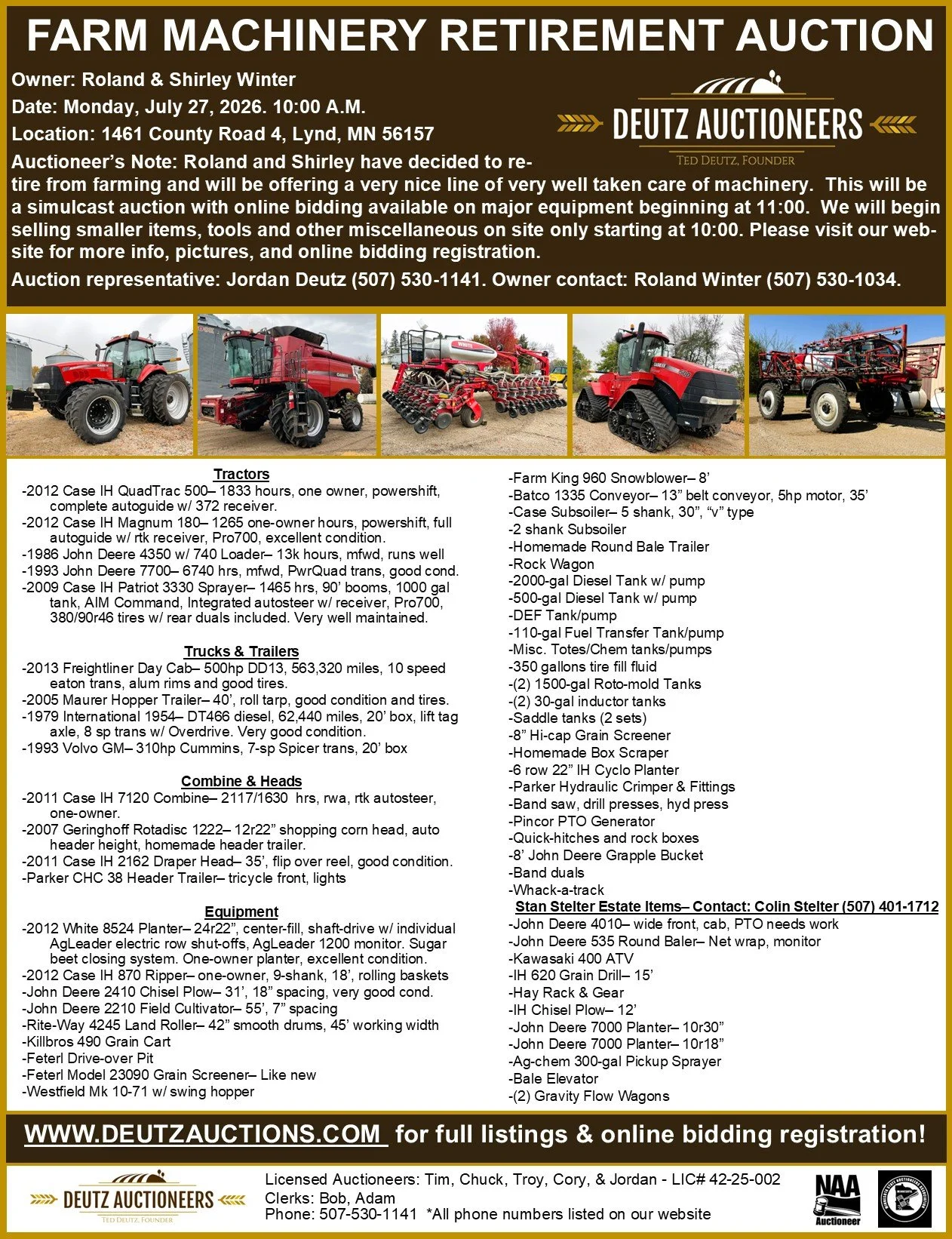 Auction representative: Jordan Deutz (507) 530-1141. Owner contact: Roland Winter (507) 530-1034.
