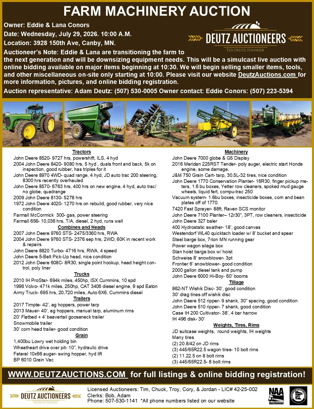 Auction representative: Adam Deutz: (507) 530-0005 Owner contact: Eddie Conors: (507) 223-5394.